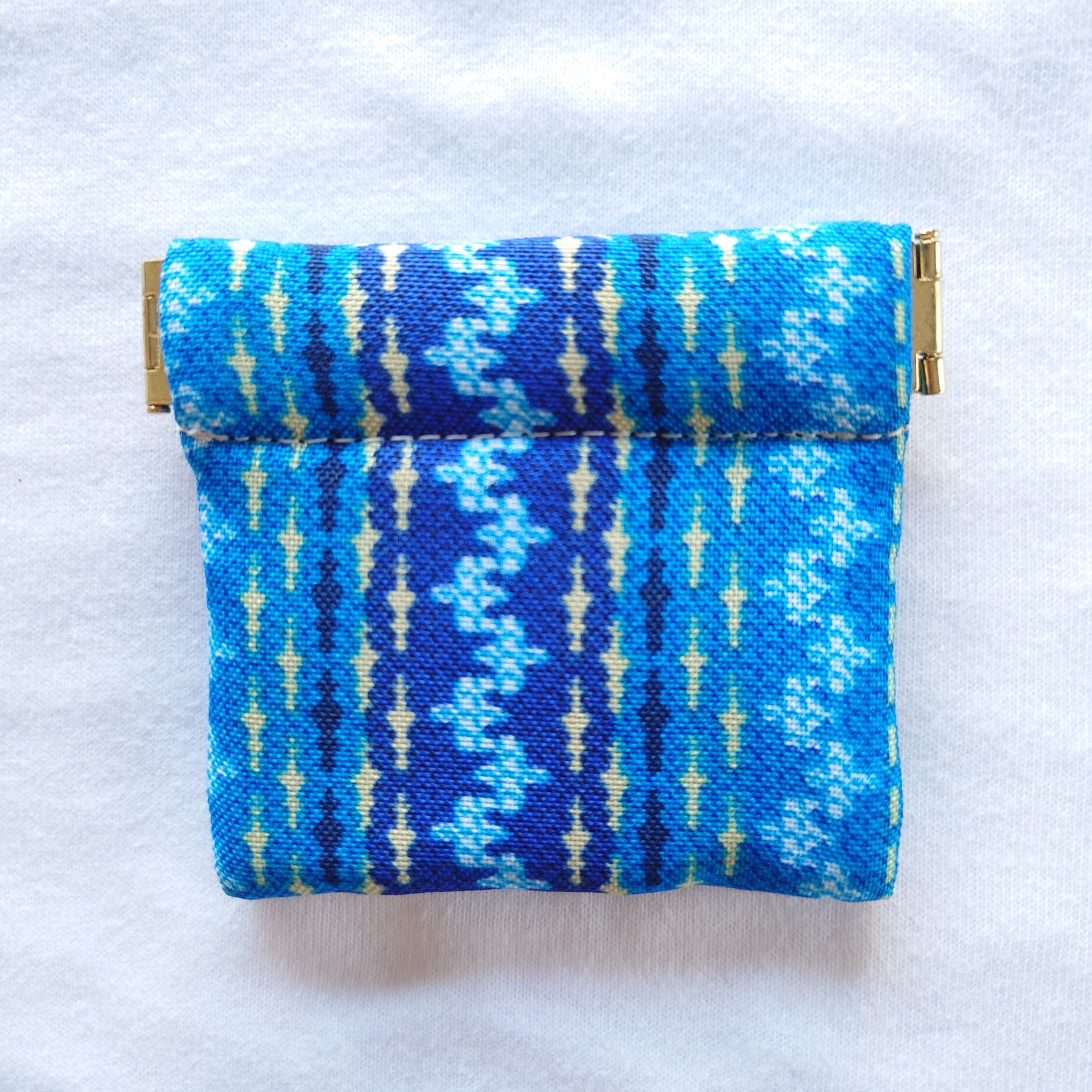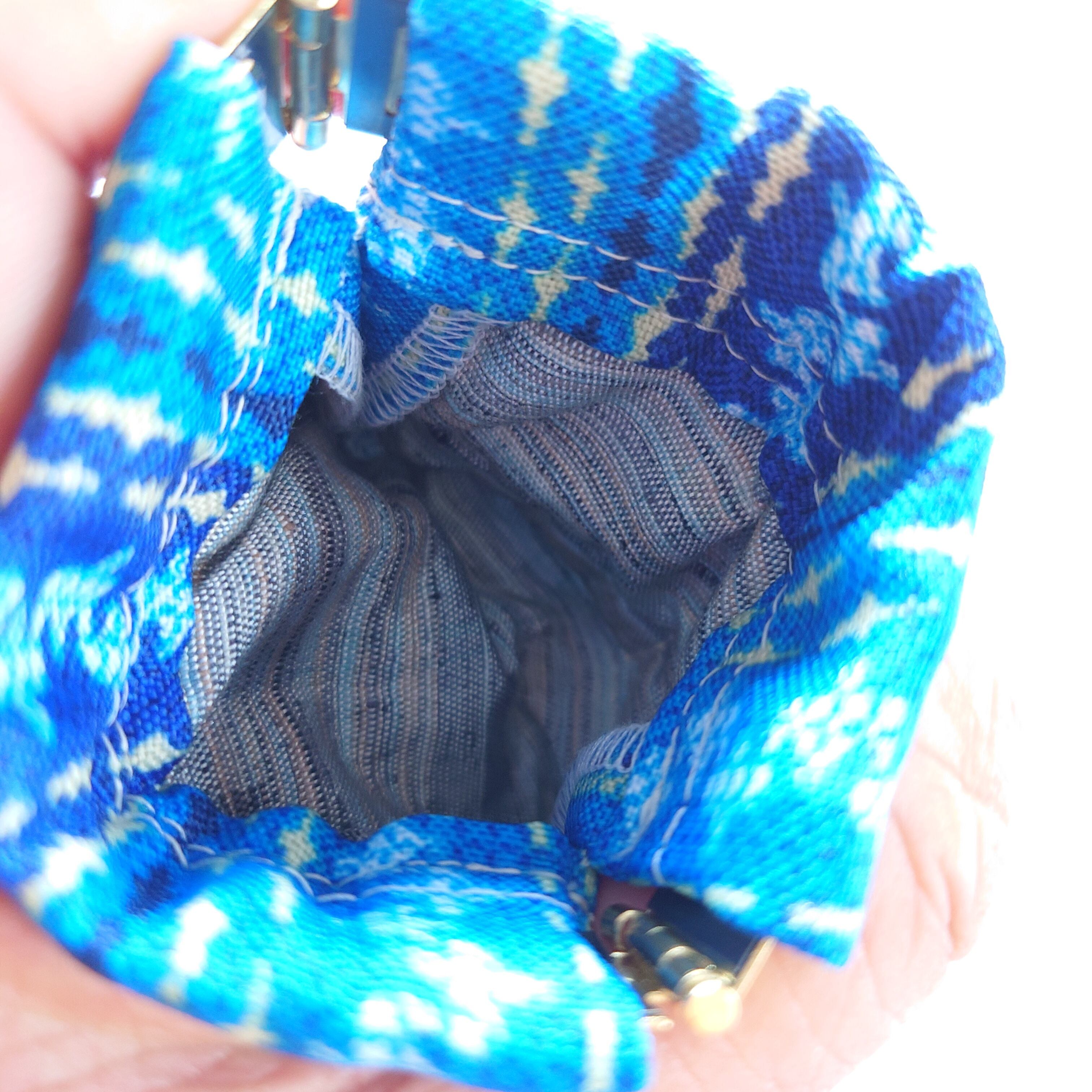 コインケース coin case フィリピン生地 ブルー×ベージュ 着物リメイク kimono